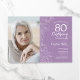 convite de aniversário lavanda floral branco roxo 80 com sua foto na frente da placa. Elegante design moderno com desenhos botânicos desenhados em destaque e letra de script de tipografia. Simples trendy convida cartão perfeito para uma festa de na moda. Pode ser personalizado para qualquer idade. Impressos convites Zazzle ou modelo de impressão digital instantânea para download.