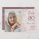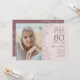 Convite de aniversário de 80, cor-de-rosa poeirento e mauve, com sua foto na frente do cartão. Elegante design moderno com desenhos botânicos desenhados em destaque e letra de script de tipografia. Simples trendy convida cartão perfeito para uma festa de na moda. Pode ser personalizado para qualquer idade. Impressos convites Zazzle ou modelo de impressão digital instantânea para download.