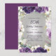 Convite de aniversário elegante para mulheres com bonito flores brancas e roxas pintadas à mão e folhas verdes sábias acentuadas com brilho dourado. Personalizado com um nome e todas as informações do seu partido. Entre em contato comigo para obter assistência com suas personalizações ou para solicitar produtos Zazzle adicionais correspondentes para o seu partido.