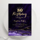 Convite de aniversário de 80 de agato roxo e dourado. Elegante design moderno com aquarela agate marble geode background, faux glitter gold e typografia script font. Trendy convida o cartão perfeito para uma comemoração de dia das mulheres na moda. Impressos convites Zazzle ou modelo de impressão digital instantânea para download.