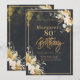 Convites Aniversário do 80 Modern Black & Dourado Floral Gl