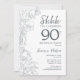 Convite de Aniversário para 90 de Surpresa Branca Branca de Slate Azul A design feminina moderna minimalista apresenta sotaques botânicos e letra de script de tipografia. Simples cartão de convite floral perfeito para uma festa surpresa na moda.