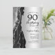 Convite de aniversário 90 preto e prateado. Elegante design moderno com fundo geode de pedra de pedra marmortal, letra falsa prata brilhante e script de tipografia. Trendy convida o cartão perfeito para uma comemoração de dia das mulheres na moda. Impressos convites Zazzle ou modelo de impressão digital instantânea para download.