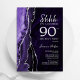 Roxo e prata agam 90 convite de aniversário surpresa. Elegante design moderno com aquarela agate marble geode background, faux glitter prata e tipografia. Trendy convida o cartão perfeito para uma comemoração de dia das mulheres na moda. Impressos convites Zazzle ou modelo de impressão digital instantânea para download.