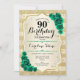 Convites Aniversário do 90 Floral Elegante Verde Dourado