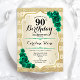 Convite de aniversário 90. Elegante design verde esmeralda floral com rosas. Funcionalidades com listas de ouro de brilho inverso e letra de script. Perfeito para uma comemoração de dia das mulheres na moda. Pode ser personalizado para qualquer idade! Impressos convites Zazzle ou modelo de impressão digital instantânea para download.