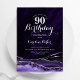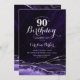 90 convite de aniversário de agato roxo e prateado. Elegante design moderno com aquarela agate marble geode background, faux glitter prata e tipografia. Trendy convida o cartão perfeito para uma comemoração de dia das mulheres na moda. Impressos convites Zazzle ou modelo de impressão digital instantânea para download.