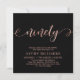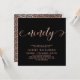 Concurso de Aniversário do Elegante Trendy Chic Black e Rosa Dourado Ninety Script 90. Este moderno modelo de convite de aniversário para mulheres apresenta o texto na moda "noventa" em um grande falso texto de folha de ouro rosa robusto, escrita à mão (ou tipografia), com letra de cauda do swash, detalhes da festa em cor de ouro rosa em branco sobre fundo preto. No lado inverso, o padrão de círculo de onda oscilante da folha rosa de ouro falso em forma de película de ouro em preto. Perfeito para comemorar, a cinzenta noventa anos em estilo, este convite adiciona um toque de glamour a qualquer partido feminino.