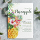 Este maravilhoso convite de aniversário de abacaxi floral tropical pode ser personalizado rápida e facilmente em qualquer idade. Este belo convite apresenta as lindas cores do abacaxi e das flores tropicais coloridas.