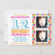 Aqui está um convite simples e fácil para fotos duplas, projetado para a celebração de festas de aniversário de dois dígitos da sua filha. Carregue suas próprias fotos quadradas (perfeito para imagens do instagram) e personalize as áreas de texto. Texto de estilo de letra de bloco fácil de ler em tons brilhantes e divertidos de rosa, azul e laranja em um plano de fundo branco simples. Parece excelente com fotografias pretas e brancas em tons de cinza, ou fotografias a cores de cheio. O fundo da grade de azulejos, nas mesmas sombras vibrantes atrás de suas fotografias quadradas brancas.