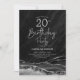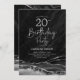 Convite de aniversário 20 preto e prateado. Elegante design moderno com aquarela agate marble geode background, faux glitter prata e tipografia. Trendy convida o cartão perfeito para uma comemoração de dia das mulheres na moda. Impressos convites Zazzle ou modelo de impressão digital instantânea para download.