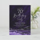 70 convite de aniversário de agato roxo e prateado. Elegante design moderno com aquarela agate marble geode background, faux glitter prata e tipografia. Trendy convida o cartão perfeito para uma comemoração de dia das mulheres na moda. Impressos convites Zazzle ou modelo de impressão digital instantânea para download.