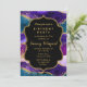 Este elegante e glamouroso convite de aniversário apresenta um fundo de mármore azul roxo e lacrimejante com sotaques dourados falsos. O texto combina o script manuscrito e as fontes sans serif modernas para um aspecto elegante e sofisticado. As sequências e a textura em apuros criam a mistura perfeita de chic e grunge.