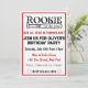 Para os entusiastas do beisebol! Convite de festas de primeiro aniversario de um garoto divertido. Apresentando uma tipografia de esportes negros legal e um beisebol e um morcego. Aniversário. Primeiro Aniversário do Menino.
