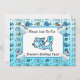 convites de aniversário de tubarão-bebê de um rapaz bonito com baleias e tubarões, fundo azul e cupcakes.
