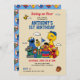 Celebre o dia especial do seu calcinha com este divertido convite de aniversário de beisebol da Sésamo Street! O design apresenta personagens favoritos da Rua Sésamo, incluindo Big Bird, Elmo segurando um taco vermelho de baseball, Monstro Cookie, Oscar, Grouch, Bert e Ernie, todos vestidos e prontos para um jogo divertido de beisebol. Um pássaro amarelo alegre voa acima enquanto nuvens lisas decoram o fundo creme. O texto vermelho e azul negrito destaca o nome, a idade, a data da festa e os detalhes do seu filho. O verso mostra um padrão colorido de faces de personagem em formas brilhantes de diamante contra um pano de fundo azul para charme extra. Perfeito para o primeiro aniversário ou qualquer jovem fã de baseball que ama a Rua Sésamo!