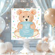 O convite para o aniversário de um garoto enfeitado apresenta uma borda colorida de confetti e um ursinho bonitinho segurando um convite de festas com fundo azul de aquarela e letra branca no estilo de escrita manual. Mostrado aqui com primeiro aniversario, mas pode ser personalizado para qualquer idade. Trabalho de arte por KL Stock.