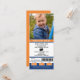 Convite para o Aniversário do Ticket de Hockey FUN para enviar uma foto com uma passagem de jogo de hóquei whimsical. AS CORES ESTÃO EM LARANJA E AZUL. Para obter informações sobre alterações de design personalizadas pelo designer independente, envie um email para paula@labellarue.com ANTES de personalizar ou fazer um pedido.
