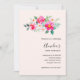 Convite de aniversário com uma imagem de aquarela branca. Um belo arranjo floral com cor rosa brilhante e rosa pastel aninhado entre folhas verdes e galhos.