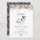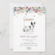 Woof! Convide familiares e amigos com convites de festas de aniversários adoráveis. Apresenta uma garland floral de aquarela, um bonito buldogue francês preto e branco e um padrão floral correspondente para o verso do convite. Este convite francês para cadelas de buldogue é perfeito para festas de aniversário de crianças e festas de aniversário de cães. Os textos são perfeitamente editáveis para qualquer ocasião. Personalize adicionando seus próprios detalhes de evento.