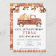 Castanho Foliage Pequeno Caminhão de Pumpkin Aniversário Sweet rustic watercolor convite de aniversário de abóbora com um belo caminhão moreno, uma grande abóbora e uma adorável folhagem de aquarela no topo. Este pequeno convite de aniversário de abóbora também apresenta uma faixa marrom de padrão de xadrez na base do convite. Este nosso pequeno convite de aniversário de abóbora é uma maneira doce de convidar convidados para um outono ou cair, rapazes temáticos de abóbora na primeira festa de aniversário.
