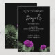 Uma escolha elegante para uma gloriosa celebração de aniversário, este cartão apresenta um impressionante motivo de cardo escocês em um fundo preto ousado. Esta flor roxa espinhosa simboliza devoção, bravura e força, tornando-a a escolha ideal para um aniversário especial