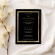 Um convite para o aniversário do casamento, preto e ouro de luxo, é perfeito para uma festa de aniversário moderno. A design romântica minimalista apresenta uma adorável e elegante design de borda de ouro em fundo preto. Personalize este design com sua mensagem e informações personalizadas. Todas as designs são impressas.