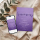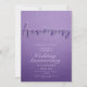 Uma maneira ousada e bela de celebrar o amor. Este elegante convite de aniversário de casamento apresenta um rico fundo de gradiente roxo com uma escrita em estilo metálico "Aniversário" e uma tipografia sofisticada. Perfeito para marcar um marco especial, de aniversários prateados a ouros ou renovações de votos. Totalmente personalizável com seus nomes, data e detalhes de festas. (Nota: o efeito metálico é impresso e não em folha real.)