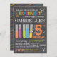 Aniversário do Chalkboard Mad Science Party - Coloque seu casaco de laboratório e se prepare para diversão explosiva! Uma festa científica louca para comemorar seu dia curioso. Este convite criativo é ideal para meninas e meninos. Sem necessidade de testes ou experimentos, esse convite de festas louco de ciência é um vencedor. Não se esqueça de checar nossa coleção de aniversários de festas loucas para combinar suprimentos de festas. A ciência é divertida!