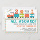 Um trem de safari moderno para o seu aniversário. Disponível para todas as idades e vem em azul/laranja/verde também na minha loja Zazzle. Envelopes brancos padrão incluídos no preço.