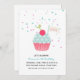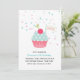 Um convite de aniversário bonito com o cupcake cor-de-rosa e azul com a cereja na parte superior e nos corações e nos confetes dos círculos. Alguns gráficos por http://myclipartstore.com/