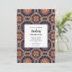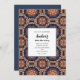 Convite de aniversário com padrão repetitivo de elementos decorativos em forma de flor, estrela e sol.