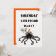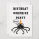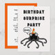 Convites de festas criativos de Dia das Bruxas ou de aniversário surpresa de outubro com uma aranha engraçada.