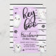 Uma festa de halloween não tão assustadora! Púrpura de Pastel Ei Boo Ghost Halloween Convite de aniversário com fundo preto e branco.