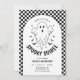 Prepare-se para levantar alguns espíritos! Este convite de aniversário de Halloween preto e branco apresenta um fantasma retrô amigável, tipografia ousada, e um fundo de checkboard de moda — perfeito para um lugar assustador. Com seu estilo moderno de encontro com retrorreflector, este convite temático é ideal para festas de crianças e encontros de adultos, quer você esteja hospedando uma farsa, um enforcamento assombrado, ou aniversário de na moda de outubro. A paleta de cores minimalista a mantém em chic, enquanto o layout lúdico traz diversão no Halloween com uma reviravolta nova. Este convite de aniversário de Halloween está disponível como download digital ou versão impressa.