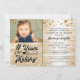 Comemore qualquer aniversário com esses convites de festas que apresentam um design de tipografia de script de caligrafia editável em preto, afirmando # ANOS NO FAZER que incorpora sua idade e o ano de nascimento estabelecido no design, acentuado com falso confete de folha metálica de ouro e fundo de ouro metálico escovado e personalizado com uma foto e seu texto personalizado. DICA DA FOTO: Para obter resultados mais rápidos/melhores, escolha uma foto com o assunto no meio e/ou faça um pré-recorte para uma forma semelhante, conforme mostrado ANTES de carregar e usar a guia MUDAR na seção PERSONALIZAR. Entre em contato com o designer por meio do Zazzle Chat ou makeitaboutyoustore@gmail.com se você quiser que este design seja modificado, em outra cor, em outro produto ou quiser coordenar itens.