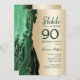 Emerald Green e ouro agitam o convite de aniversário 90 surpresa. Elegante design moderno com aquarela agate marble geode background, faux glitter gold e typografia script font. Trendy convida o cartão perfeito para uma comemoração de dia das mulheres na moda. Impressos convites Zazzle ou modelo de impressão digital instantânea para download.