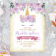 Dourada Glitter Teal Purple Floral Unicorn Convite de Aniversário