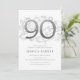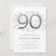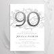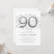 Elegante convite de aniversário branco-90 prateado. Design feminina moderna personalizável, com sotaques botânicos rosas e prata brilhante fraca. Simples cartão de convite floral perfeito para uma comemoração de um na moda. Personalize com seus próprios detalhes. Impressos convites Zazzle ou modelo de impressão digital instantânea para download.