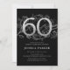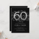 Elegante convite de aniversário preto prateado 60º. Design feminina moderna personalizável, com sotaques botânicos rosas e prata brilhante fraca. Simples cartão de convite floral perfeito para uma comemoração de um na moda. Personalize com seus próprios detalhes. Impressos convites Zazzle ou modelo de impressão digital instantânea para download.