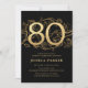 Convite de aniversário de 80 de ouro negro elegante. Design feminina moderna personalizável, com sotaques botânicos rosas e ouro brilhante falso. Simples cartão de convite floral perfeito para uma comemoração de um na moda. Personalize com seus próprios detalhes. Impressos convites Zazzle ou modelo de impressão digital instantânea para download.