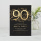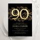 Convite de aniversário de 90 de ouro negro elegante. Design feminina moderna personalizável, com sotaques botânicos rosas e ouro brilhante falso. Simples cartão de convite floral perfeito para uma comemoração de um na moda. Personalize com seus próprios detalhes. Impressos convites Zazzle ou modelo de impressão digital instantânea para download.