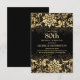 Convites Aniversário do Elegante Black Dourado Floral Glitt