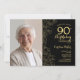 Convites Aniversário do Elegante Black Dourado Floral Photo