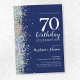 Convite de Aniversário do Elegante Glitter Marinho Azul 70. Para um grande convite de aniversário com um toque de elegância, esta design apresenta um estilo moderno e sofisticado com a quantidade certa de brilho. O convite apresenta um fundo enfeitado com sotaques brilhantes elegantes que captam a luz lindamente. A tipografia moderna destaca o nome e os detalhes do evento do celebrante, criando um equilíbrio harmonioso entre a design e elegância do eterno contemporâneo. Esse convite expele uma sensação glamourosa, porém refinada, perfeita para celebrar um marco especial com graça e estilo.