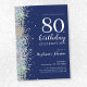 Convite de Aniversário do Elegante Glitter Marinho Azul 80. Para um grande convite de aniversário com um toque de elegância, esta design apresenta um estilo moderno e sofisticado com a quantidade certa de brilho. O convite apresenta um fundo enfeitado com sotaques brilhantes elegantes que captam a luz lindamente. A tipografia moderna destaca o nome e os detalhes do evento do celebrante, criando um equilíbrio harmonioso entre a design e elegância do eterno contemporâneo. Esse convite expele uma sensação glamourosa, porém refinada, perfeita para celebrar um marco especial com graça e estilo.