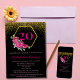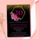 Convites Aniversário do Elegante Negro Dourado Rosa 20