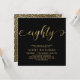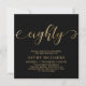 Chic Black e Dourado Convite de aniversário para 80 de 80 Script. Este modelo moderno apresenta o na moda "oitenta" texto em uma enorme folha de ouro falso, escrita por caligrafia (ou tipografia) manuscrita, com caudas de haste, detalhes da festa em cor dourada sobre fundo preto. No lado inverso, a folha de ouro invertida inverte o padrão do círculo de onda giratória em fundo preto. Perfeito para comemorar os oitenta anos de marcos no estilo, este convite adiciona um toque de glamour a qualquer partido, tanto para homens como para mulheres.