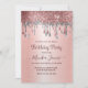 Este rosa elegante chic e dourado e convite de aniversário brilhante prateado pingando brilho é perfeito para qualquer idade com legal rosa dourado pincelado de metal esfregado pincelado e rotinas pingando design. Personalize-o com suas próprias informações com lindas fontes monográficas.