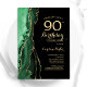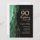 Emerald verde, preto e ouro agate 90 convite de aniversário. Elegante design moderno com cor aquática verde agate marble geode background, faux glitter gold e typografia script font. Trendy convida o cartão perfeito para uma comemoração de dia das mulheres na moda. Impressos convites Zazzle ou modelo de impressão digital instantânea para download.
